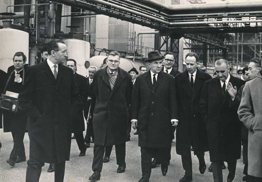 А. Н. Косыгин (в центре) на Оренбургском газоперерабатывающем заводе (1975). Слева — директор завода В. С. Черномырдин Фото: Commons.wikimedia.org/ Александр Стручков