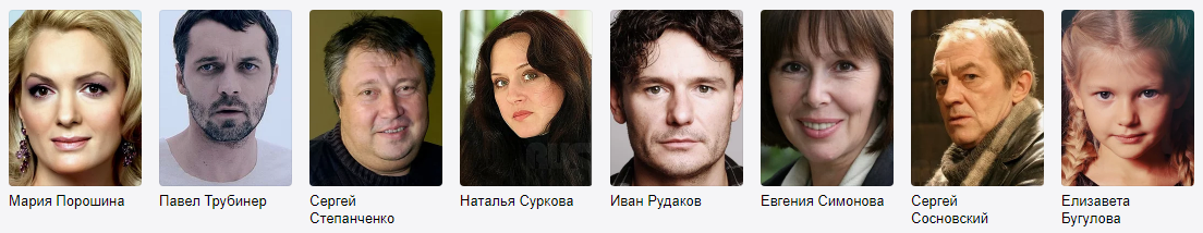 Актеры: Александр Лазарев, Анна Легчилова, Анна Старшенбаум, Виктория Романенко, Игорь Ясулович, Светлана Немоляева, Полина Кутепова, Алика Смехова, Яна Сексте, Валерий Гаркалин и другие.