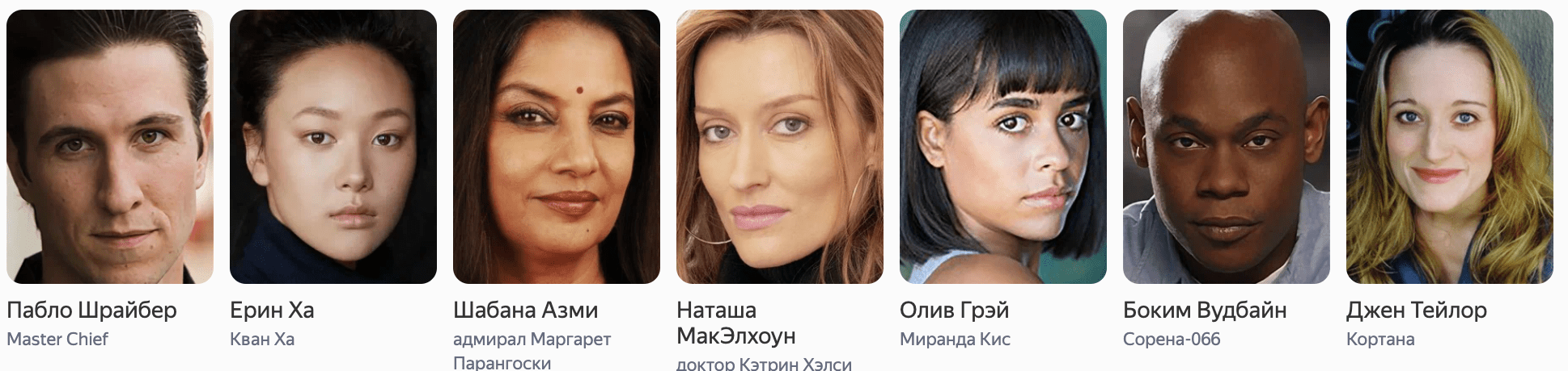 В роли мастера-старшины Джоне-117 «Мастера Чифа» зрители увидят Пабло Шрайбера, а в образе его постоянной спутницы, искусственного интеллекта Кортаны – Джен Тейлор, которая озвучила эту героиню в компьютерной игре.