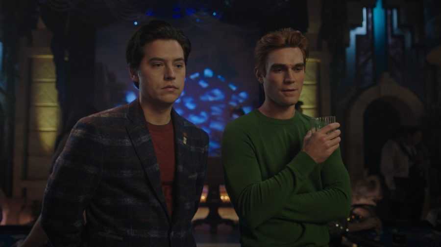Коул Спроус в роли «Джагхеда» Джонса (рассказчика) и Кей Джей Апа в роли Арчибальда «Арчи» Эндрюса в 6-ом сезоне «Ривердэйла»