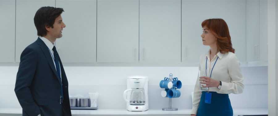 Адам Скотт в роли Марка и Бритт Лоуэр в роли Хелли в сериале «Разделение / Severance» (2022)