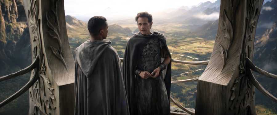 Роберт Арамайо в роли Эльронда и Морвет Кларк в роли Галадриэли в сериале «Властелин колец: Кольца власти / The Lord of the Rings: The Rings of Power» (2022)